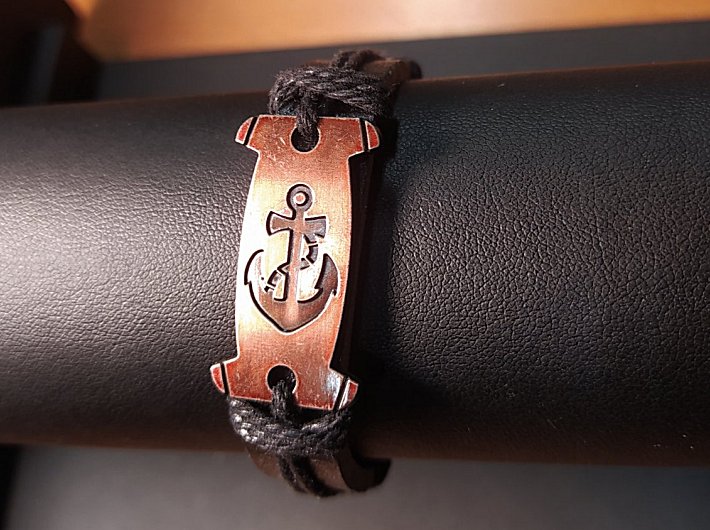 Navy χειροποίητο Δερμάτινο βραχιόλι με ανοξείδωτο ατσάλι