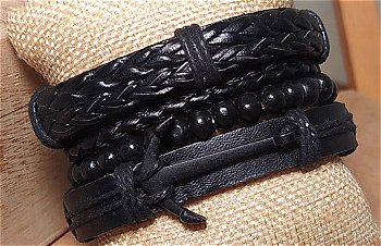 Navy χειροποίητο Δερμάτινο βραχιόλι με 3πλό σχέδιο