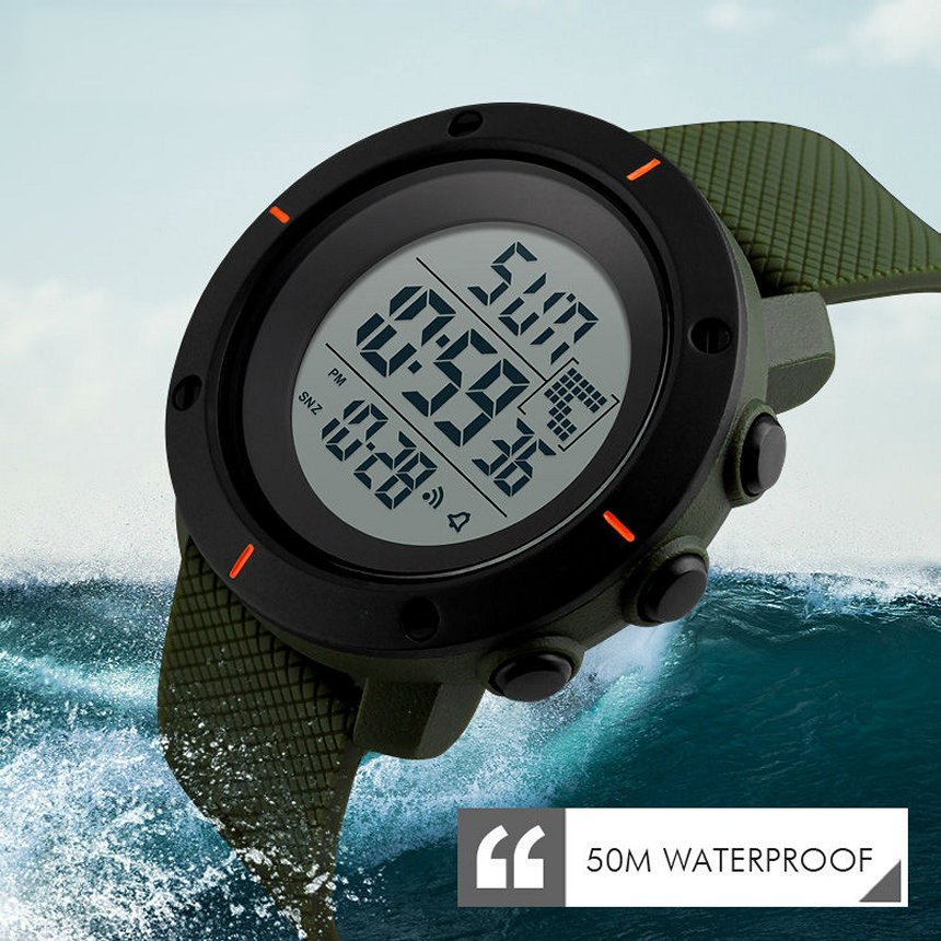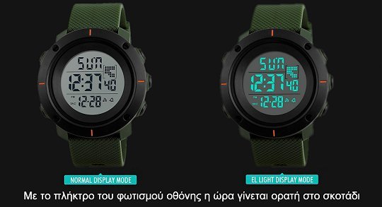 Λειτουργίες: Αυτόματη Ημερομηνία, Repeater, Alarm, Οθόνη LED, Shock Resistant, Χρονόμετρο, 12h/24h, Οπίσθιος φωτισμός πλήρους οθόνης