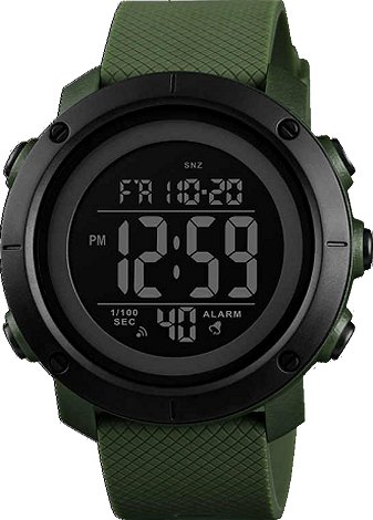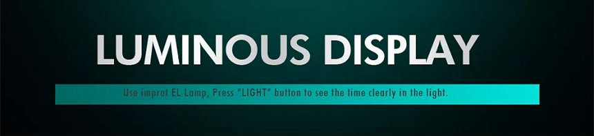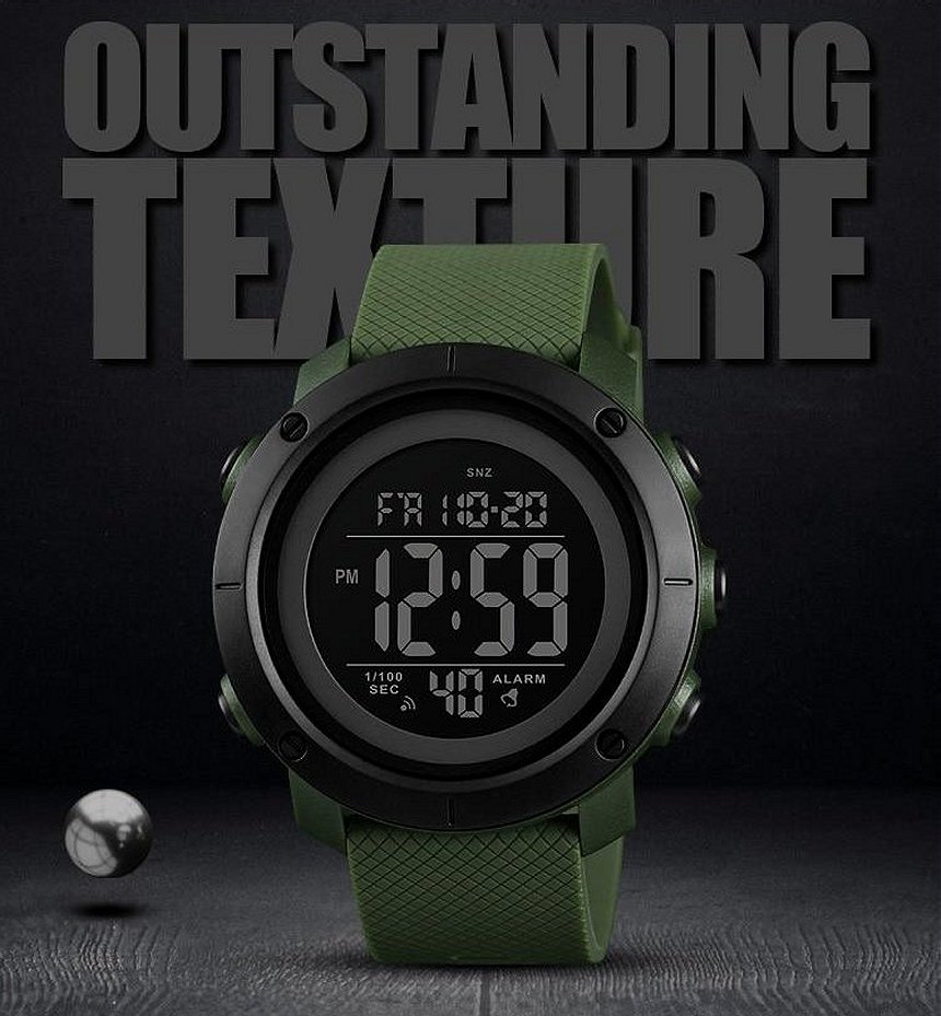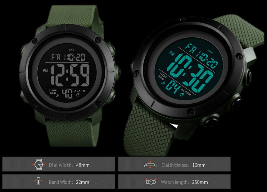 Λειτουργίες: Αυτόματη Ημερομηνία, Repeater, Alarm, Οθόνη LED, Shock Resistant, Χρονόμετρο, 12h/24h, Οπίσθιος φωτισμός πλήρους οθόνης