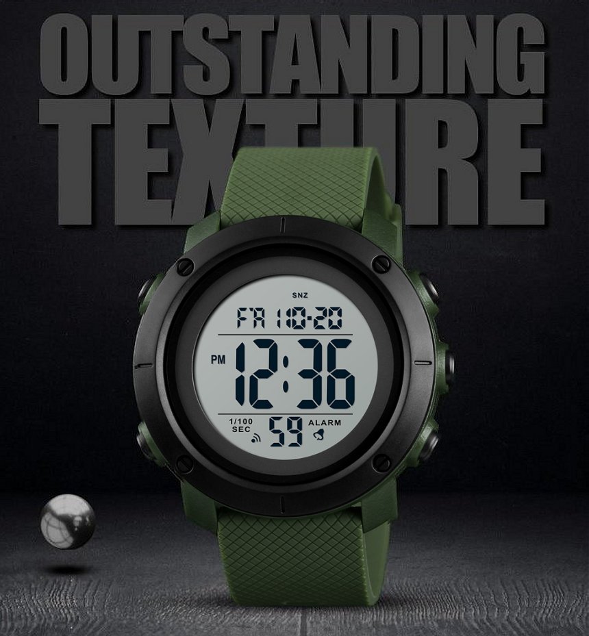 Λειτουργίες: Αυτόματη Ημερομηνία, Repeater, Alarm, Οθόνη LED, Shock Resistant, Χρονόμετρο, 12h/24h, Οπίσθιος φωτισμός πλήρους οθόνης