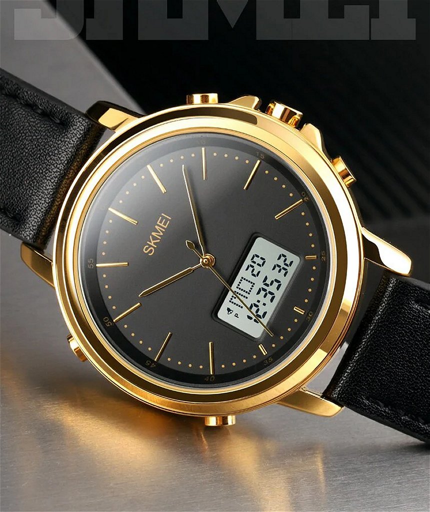 Λουρί από δέρμα, κάσα από ανοξείδωτο ατσάλι με 2 διαφορετικούς μηχανισμούς, αναλογικό και ψηφιακό στην ίδια κάσα, πρόσοψη από γυαλί και 2 χρόνια εγγύηση.