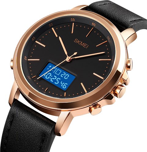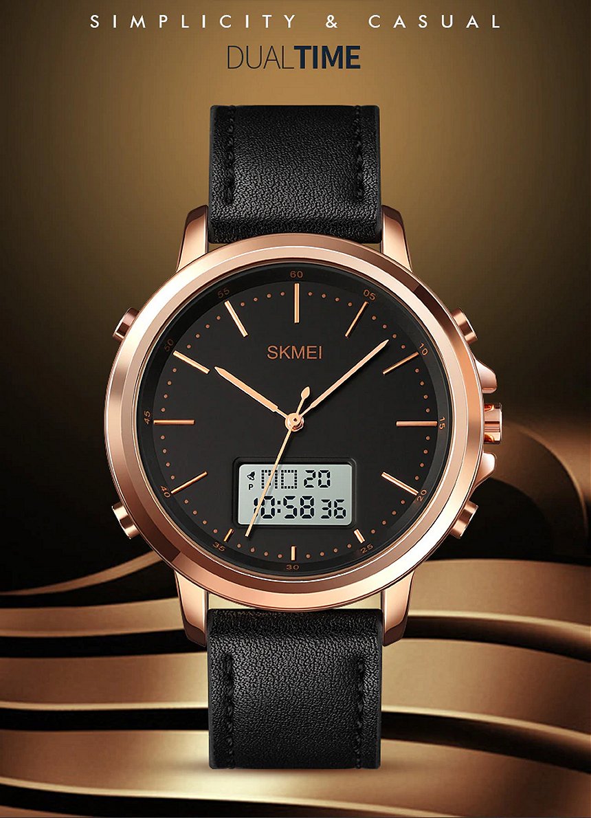 Λουρί από δέρμα, κάσα από ανοξείδωτο ατσάλι με 2 διαφορετικούς μηχανισμούς, αναλογικό και ψηφιακό στην ίδια κάσα, πρόσοψη από γυαλί και 2 χρόνια εγγύηση.