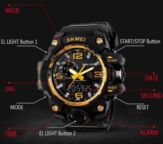 Λειτουργίες: Αυτόματη Ημερομηνία, Repeater, Alarm, Χρονογράφος, Οθόνη LED, Shock Resistant, Χρονόμετρο, 12h/24h, Φωτισμός οθόνης