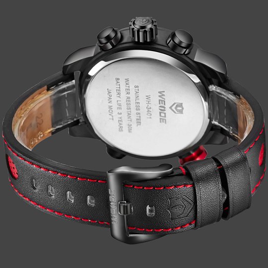 μαύρο λουράκι και τις κόκκινες ραφές.